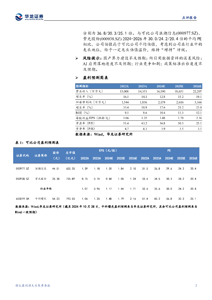华龙证券:中科曙光(603019)-2024年三季报点评报告:业绩稳定增长,计算生态布局优势凸显.pdf
