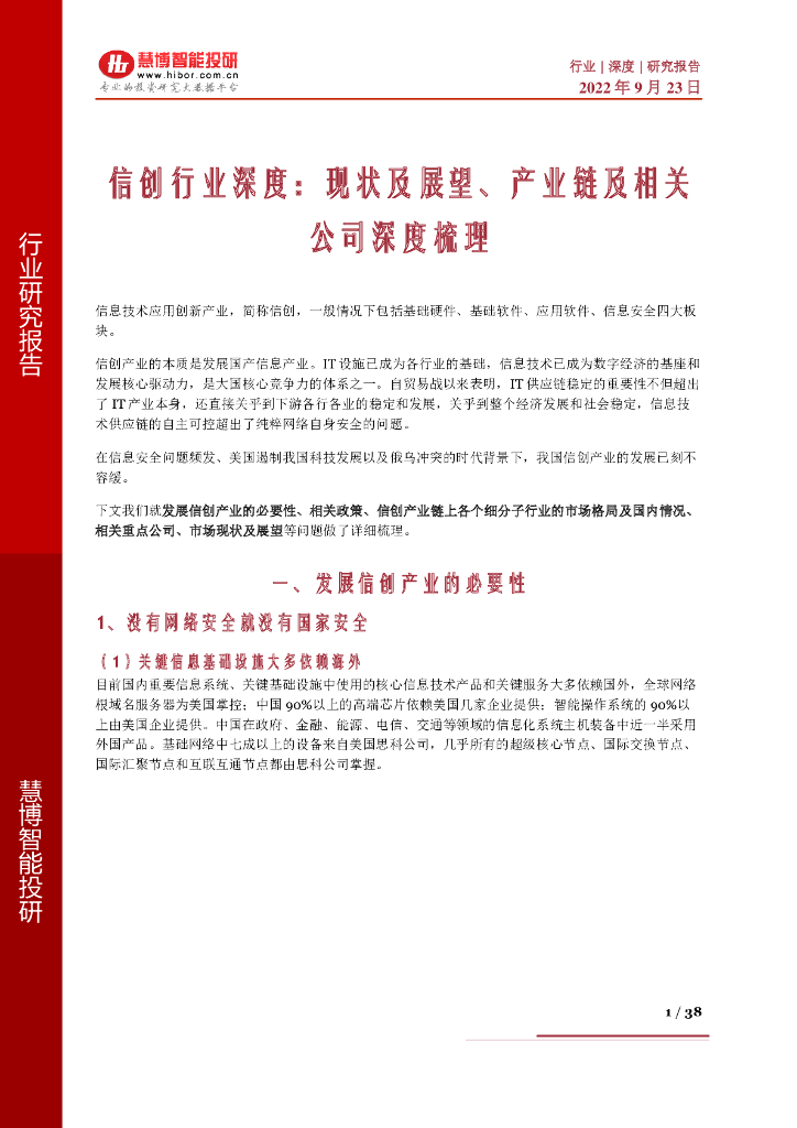 慧博智能投研:信创行业深度:现状及展望、产业链及相关公司深度梳理.pdf