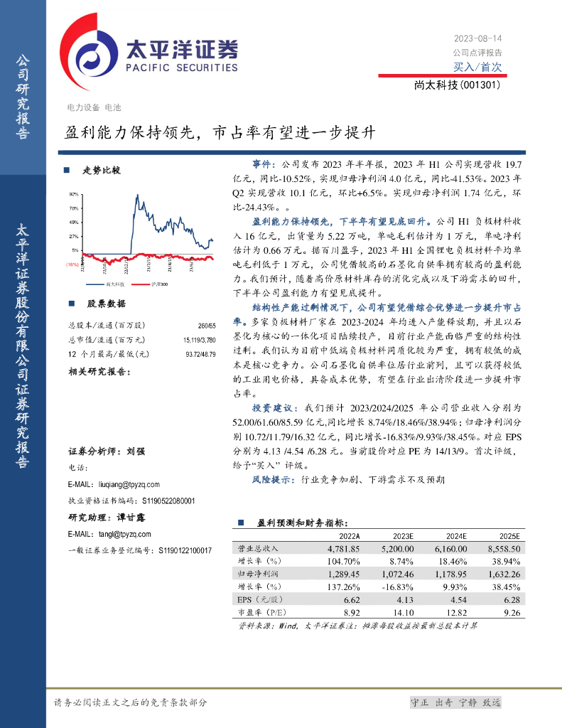 太平洋证券:尚太科技(001301)-盈利能力保持领先,市占率有望进一步提升.pdf