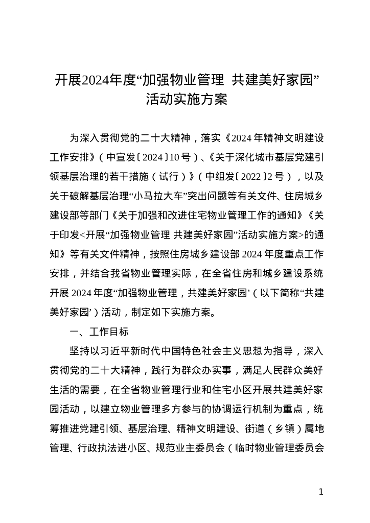 开展2024年度“加强物业管理 共建美好家园”活动实施方案.doc