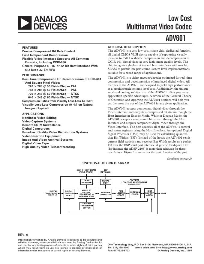 ANALOG DEVICES ADV601 英文产品数据手册.pdf