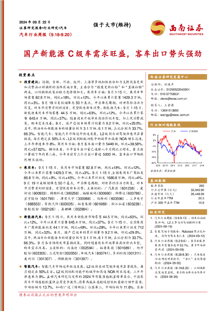 西南证券:汽车行业周报:国产新能源C级车需求旺盛,客车出口势头强劲.pdf