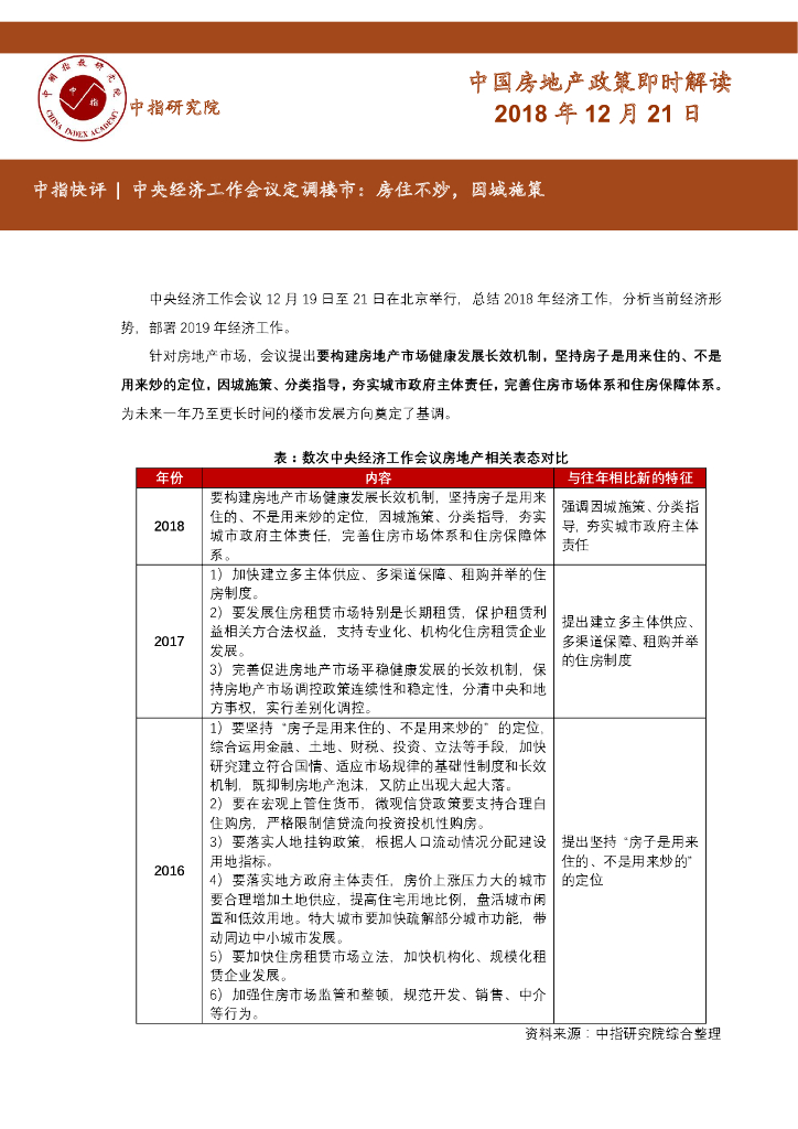 中国指数研究院:中央经济工作会议定调楼市-房住不炒,因城施策.pdf