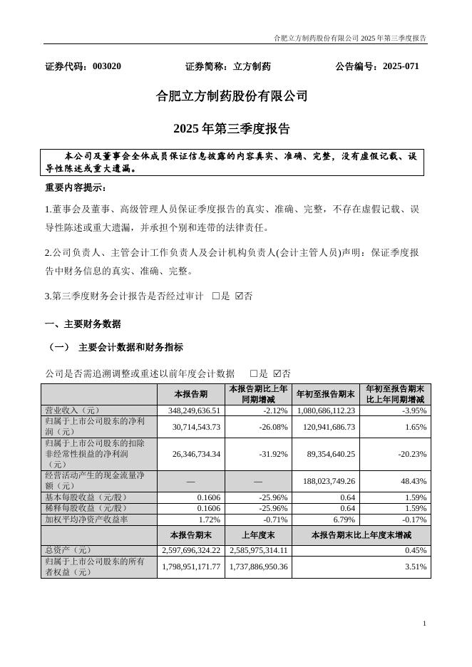 003020-立方制药:2025年三季度报告.pdf