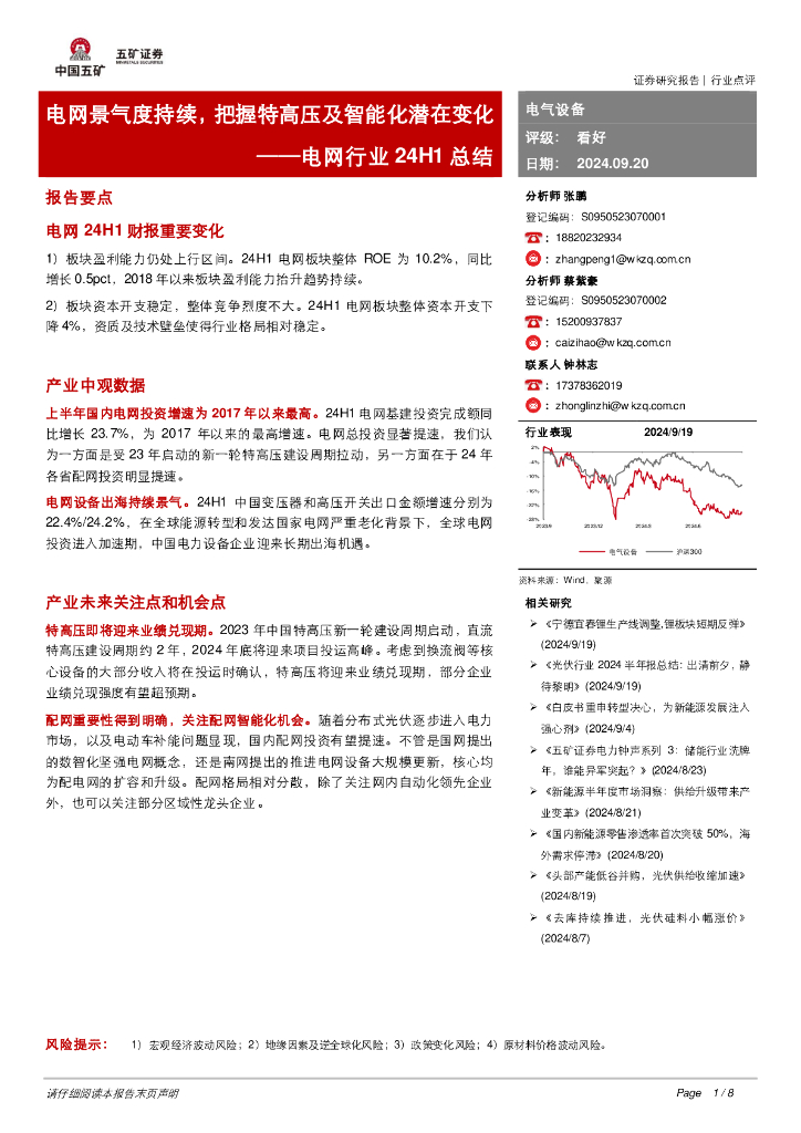 五矿证券:电网行业24H1总结:电网景气度持续,把握特高压及智能化潜在变化.pdf