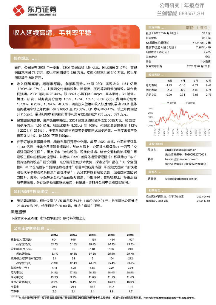 东方证券:兰剑智能(688557)-收入延续高增,毛利率平稳.pdf