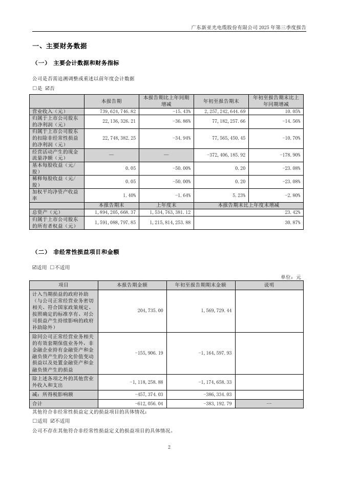 001382-新亚电缆:2025年三季度报告.pdf
