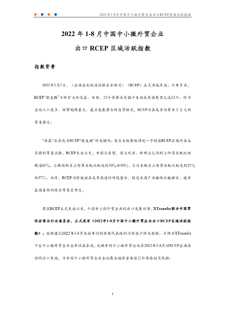 XTransfer:2022年1-8月中国中小微外贸企业出口RCEP区域活跃指数.pdf