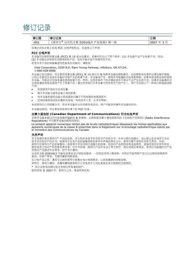 英特尔 台式机主板 D201GLY 产品指南.pdf
