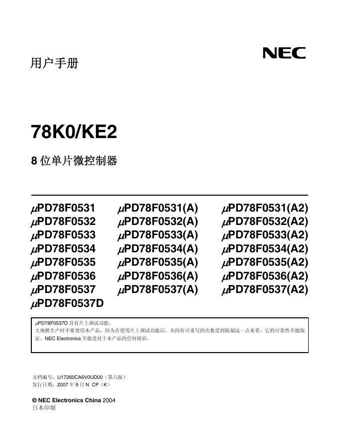 NEC 78K0/KE2 μPD78F0531 μPD78F0531(A) μPD78F0531(A2) μPD78F0532 μPD78F0532(A) μPD78F0532(A2) μPD78F0533 μPD78F0533(A) μPD78F0533(A2) μPD78F0534 μPD78F0534(A.pdf