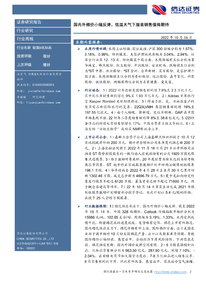 信达证券:纺织服装&化妆品行业周报:国内外棉价小幅反弹,低温天气下服装销售值得期待.pdf