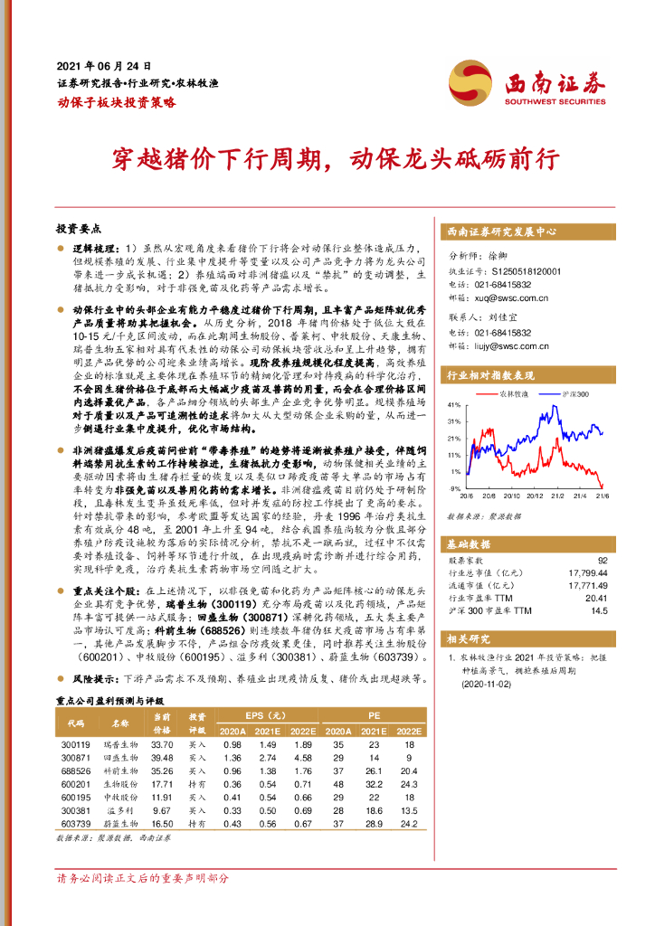 西南证券:农林牧渔:动保子板块投资策略-穿越猪价下行周期,动保龙头砥砺前行.pdf