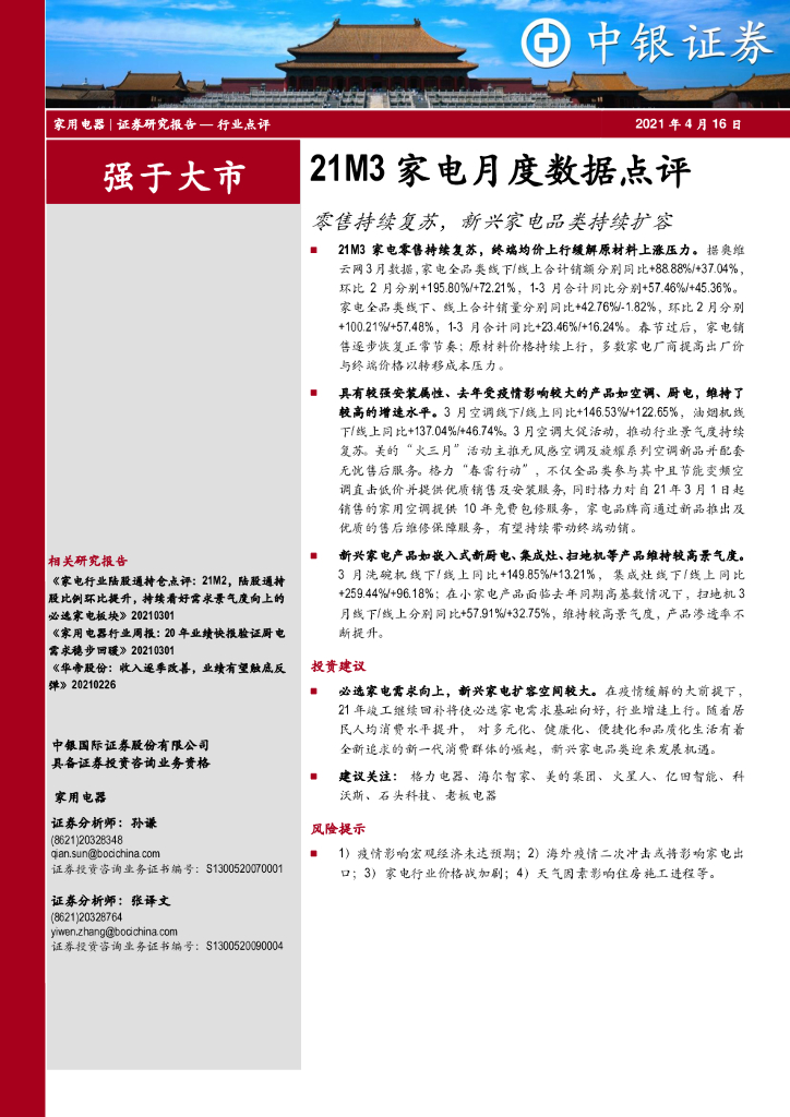 中银证券:21M3家电月度数据点评:零售持续复苏,新兴家电品类持续扩容.pdf