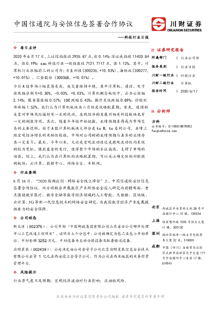 川财证券:科技行业日报:中国信通院与安恒信息签署合作协议.pdf