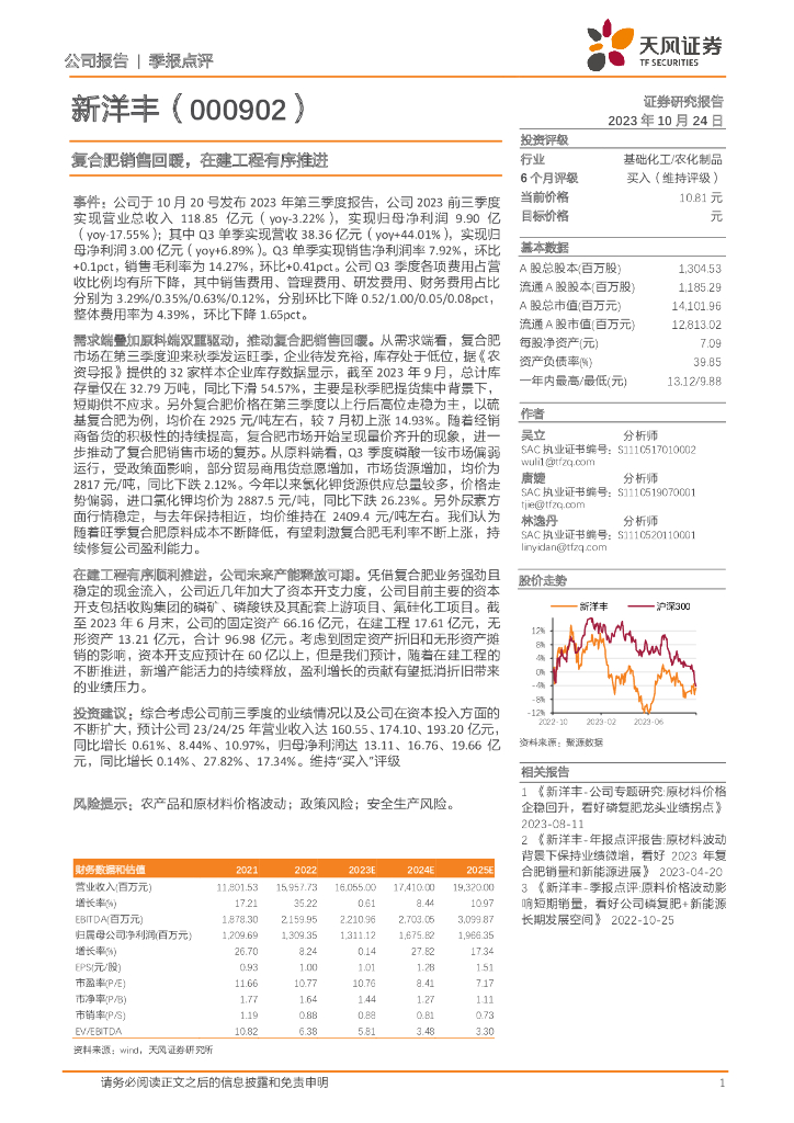 天风证券:新洋丰(000902)-复合肥销售回暖,在建工程有序推进.pdf
