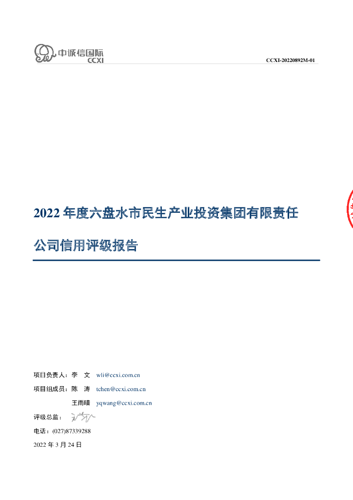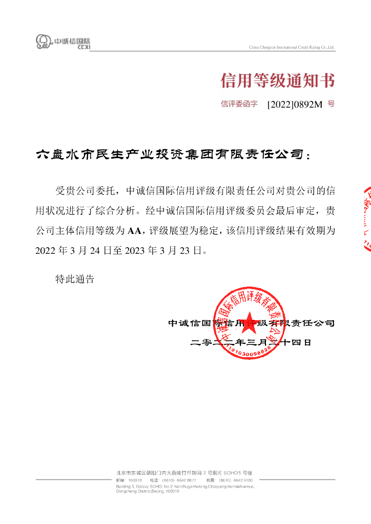 中诚信:2022年度六盘水市民生产业投资集团有限责任公司信用评级报告.pdf