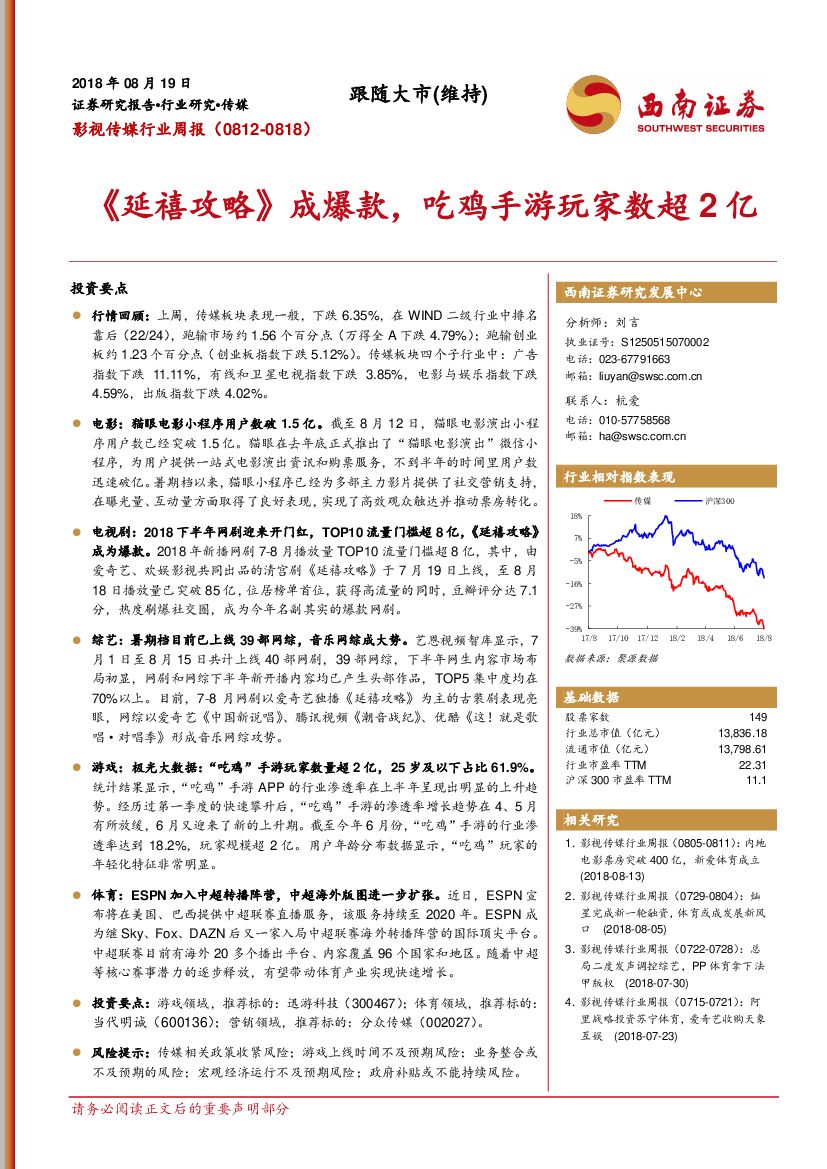 西南证券:影视传媒行业周报:《延禧攻略》成爆款,吃鸡手游玩家数超2亿.pdf