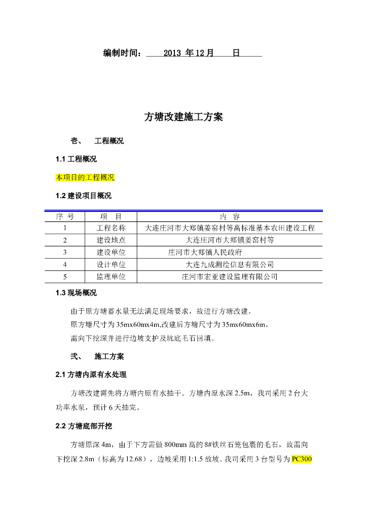 高标准基本农田建设项目扩建方塘施工方案.doc