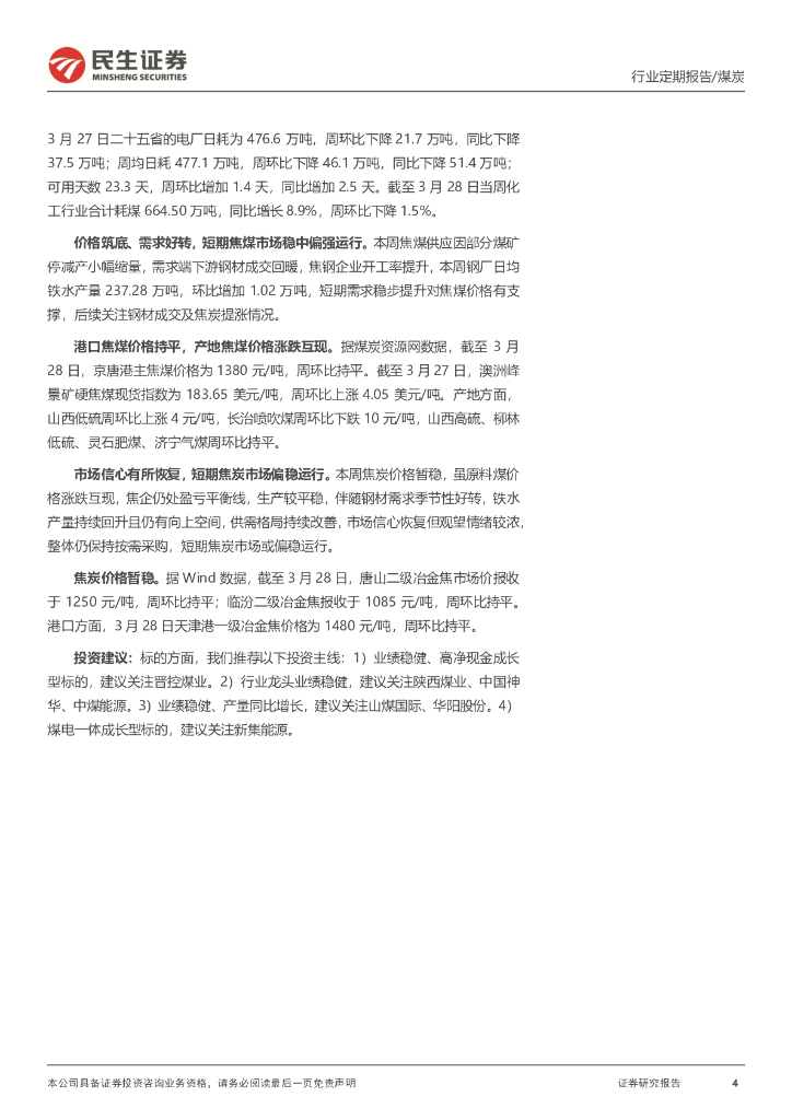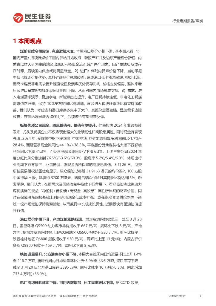民生证券:煤炭周报:煤价延续窄幅震荡,板块优质公司现金、股息价值强.pdf