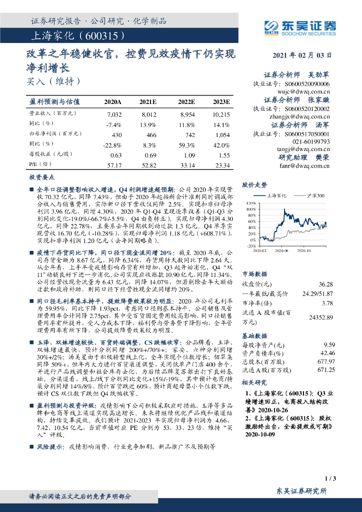 东吴证券:上海家化(600315)-改革之年稳健收官,控费见效疫情下仍实现净利增长.pdf