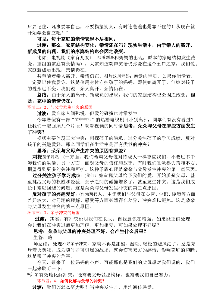 七年级上册 初中道德与法治爱在家人间(详细教案).doc