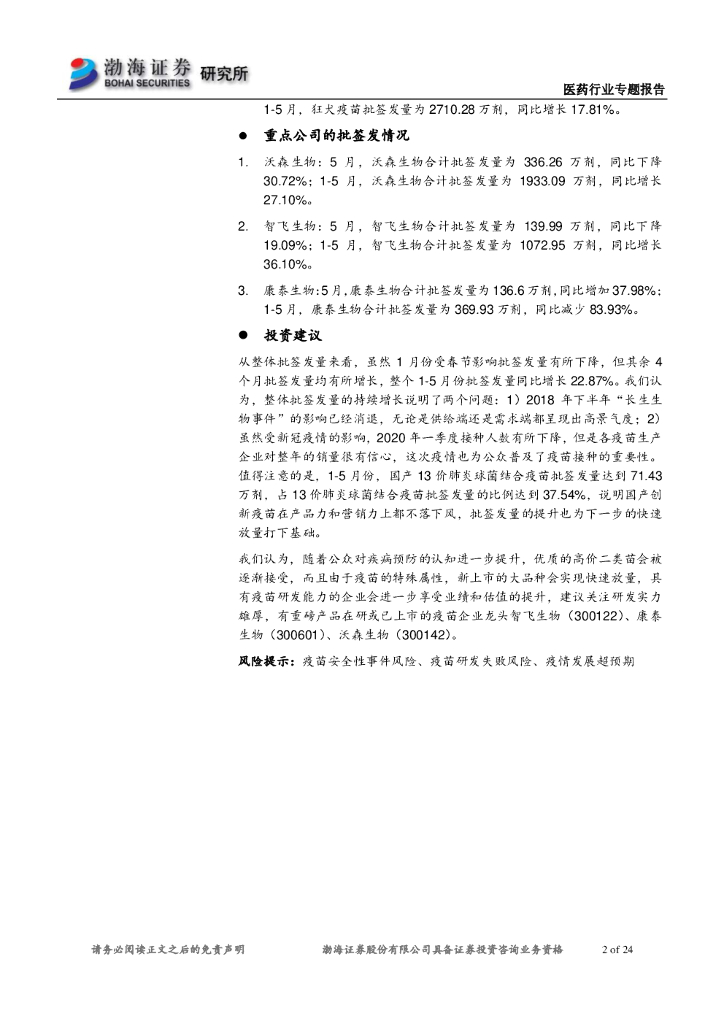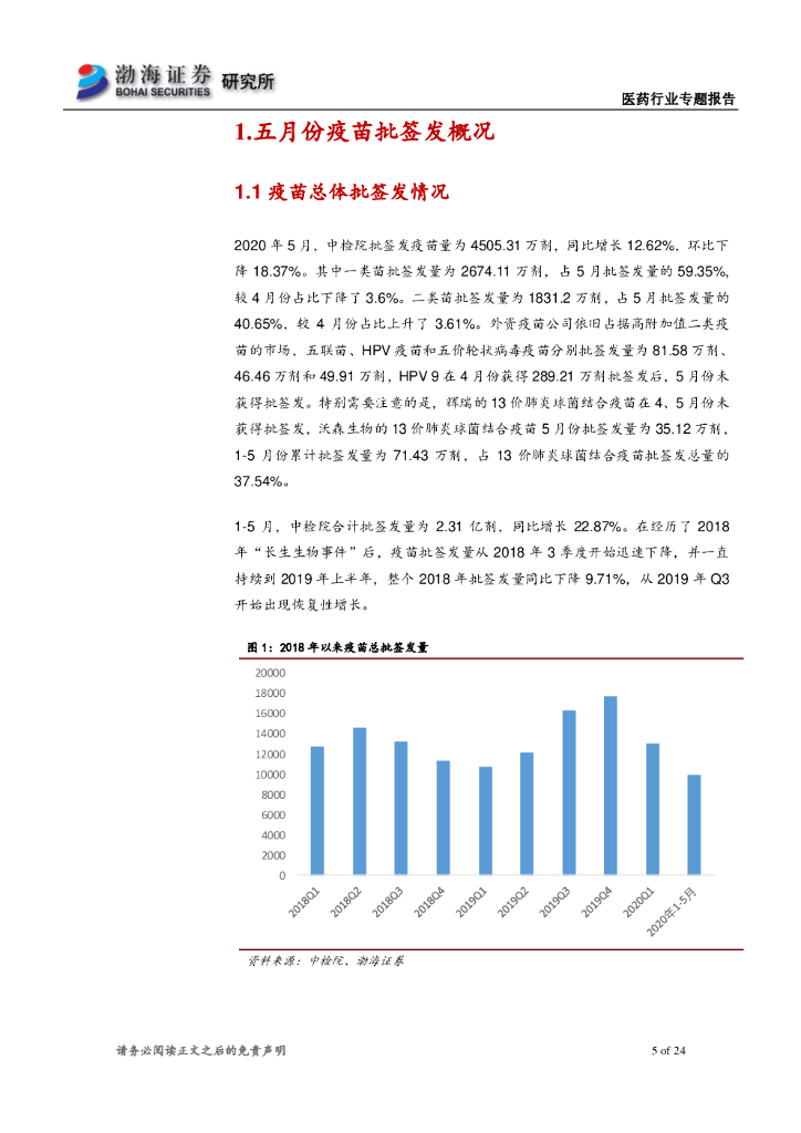 渤海证券:医药行业专题报告:五月份疫苗批签发:国产13价肺炎结合疫苗占比不断提升.pdf