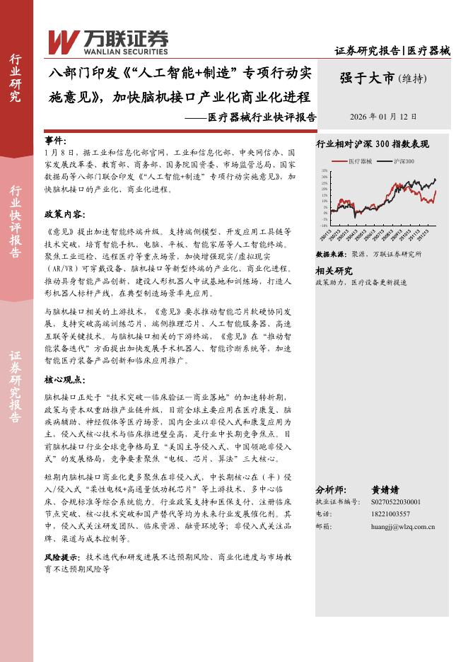 万联证券:医疗器械行业快评报告:八部门印发《“人工智能+制造”专项行动实施意见》,加快脑机接口产业化商业化进程.pdf
