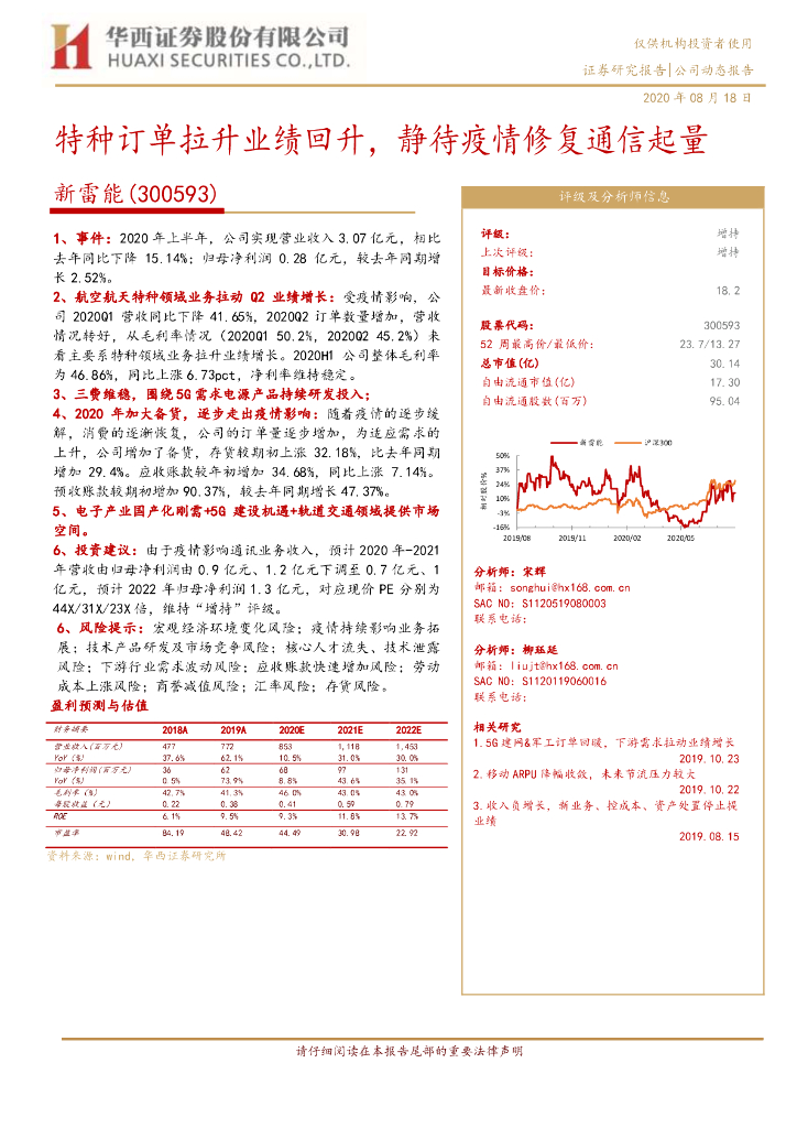 华西证券:新雷能(300593)-特种订单拉升业绩回升,静待疫情修复通信起量.pdf