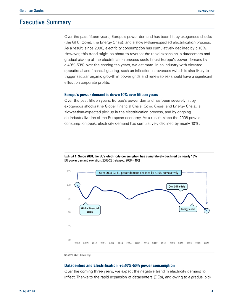 高盛:2024为欧洲供电报告:人工智能数据中心和电气化将推动电力消耗增长约40%-50%(英文版).pdf