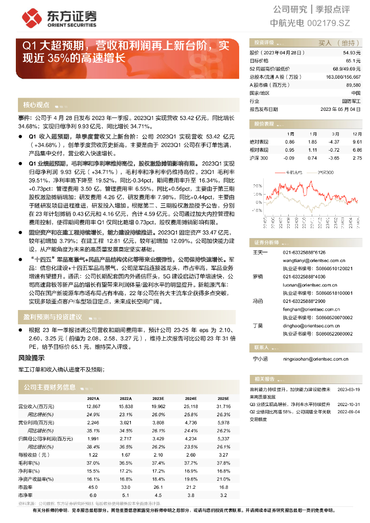 东方证券:中航光电(002179)-Q1大超预期,营收和利润再上新台阶,实现近35%的高速增长.pdf