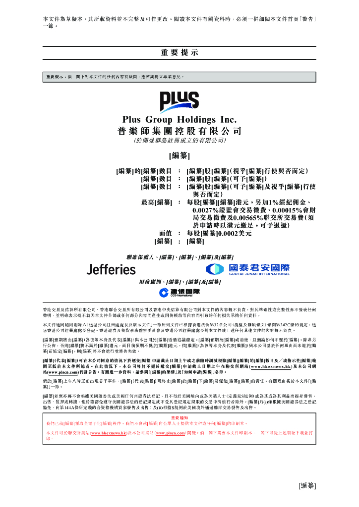 Plus普乐师集团控股有限公司港交所IPO上市招股说明书:2022年前三季度净利同比降超25%.pdf