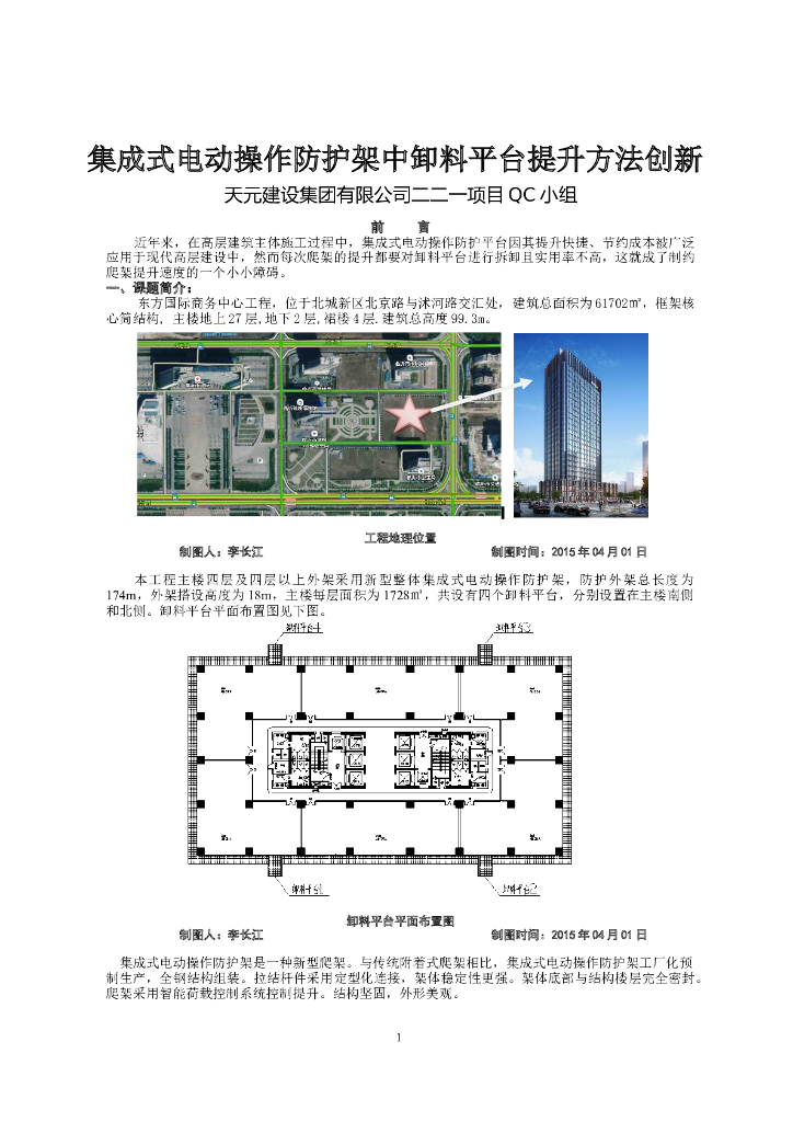 集成式电动操作防护架中卸料平台提升方法创.doc