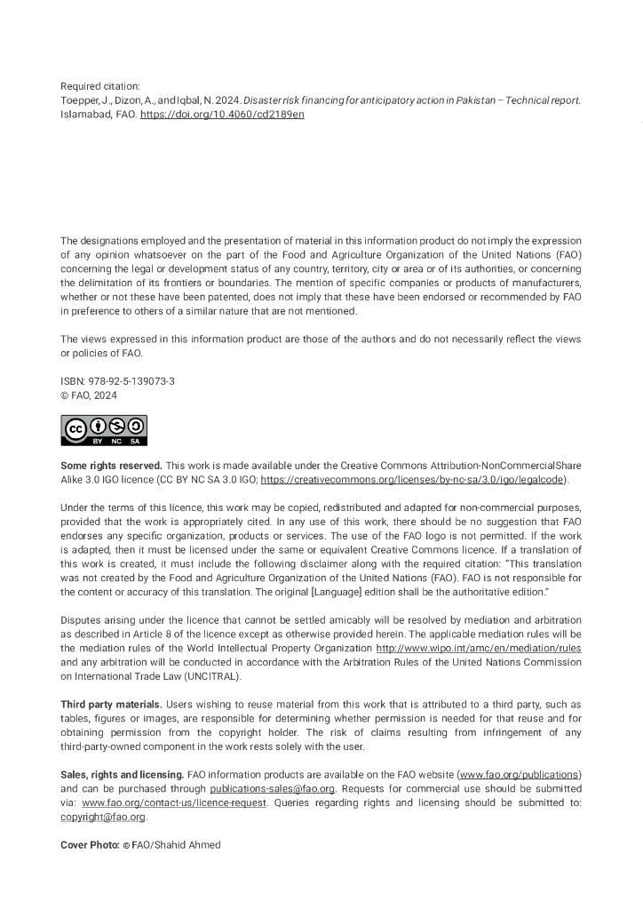 FAO联合国粮农组织:2024年巴基斯坦预防性灾害风险融资技术报告(英文版).pdf