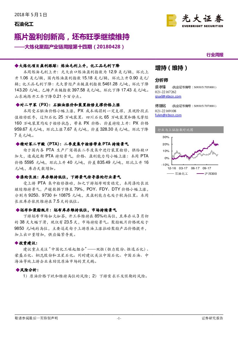 光大证券:大炼化聚酯产业链周报第十四期:瓶片盈利创新高,坯布旺季继续维持.pdf