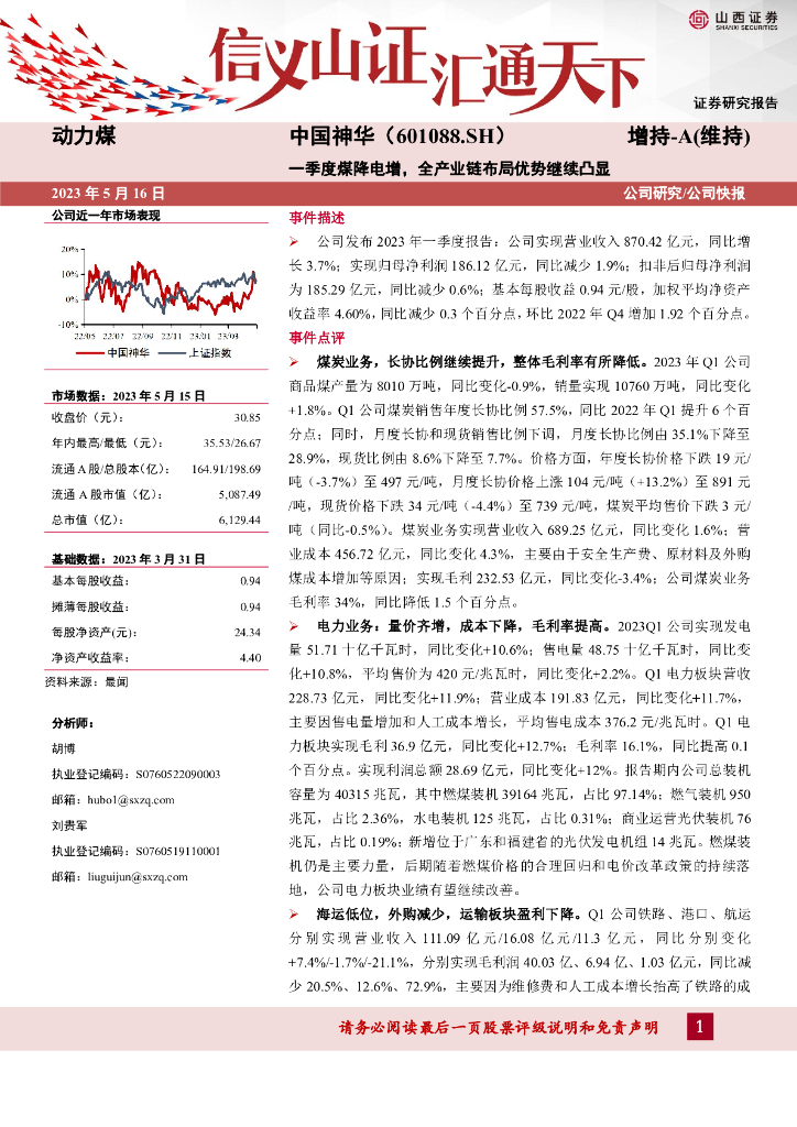 山西证券:中国神华(601088)-一季度煤降电增,全产业链布局优势继续凸显.pdf