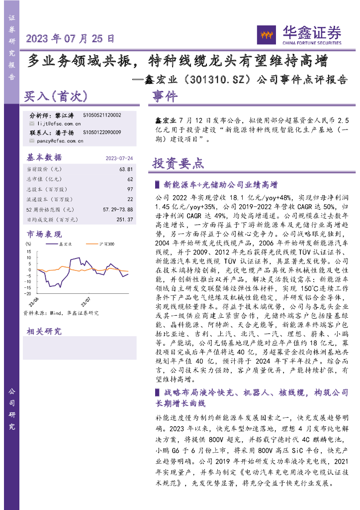华鑫证券:鑫宏业(301310)-公司事件点评报告:多业务领域共振,特种线缆龙头有望维持高增.pdf