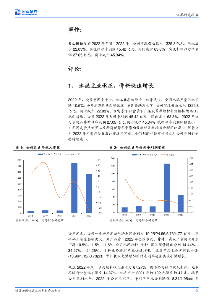 国海证券:天山股份(000877)-2022年报点评报告:骨料放量部分抵消水泥下滑,高资本开支下看好长期盈利能力提升.pdf
