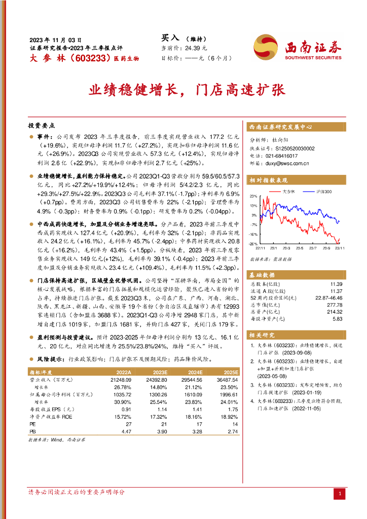 西南证券:大参林(603233)-业绩稳健增长,门店高速扩张.pdf