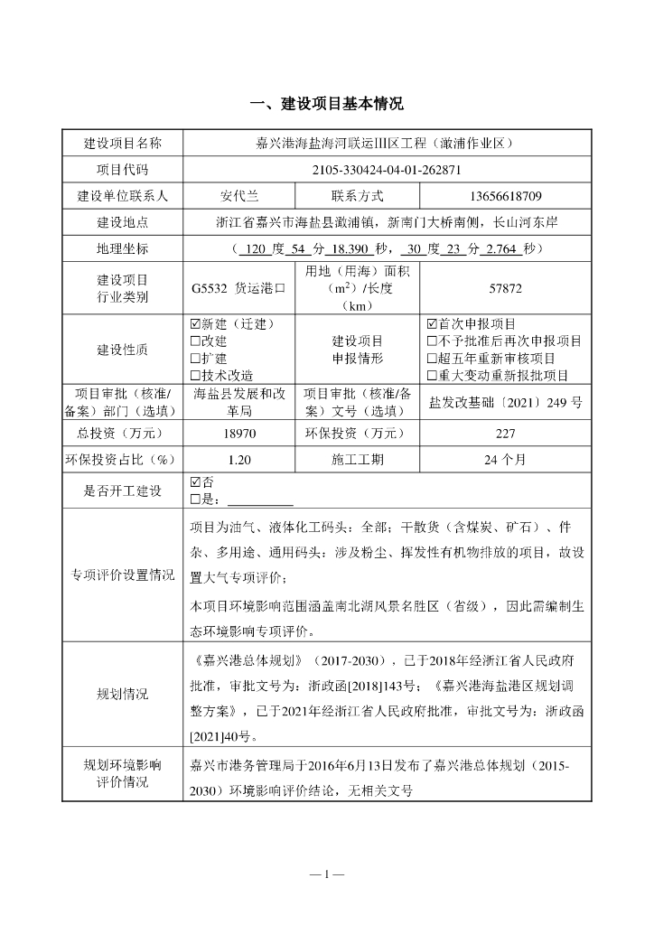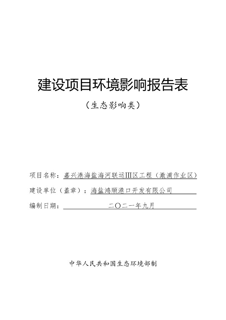 嘉兴港海盐海河联运Ⅲ区工程(澉浦作业区)建设项目环境影响报告表(生态影响类).pdf