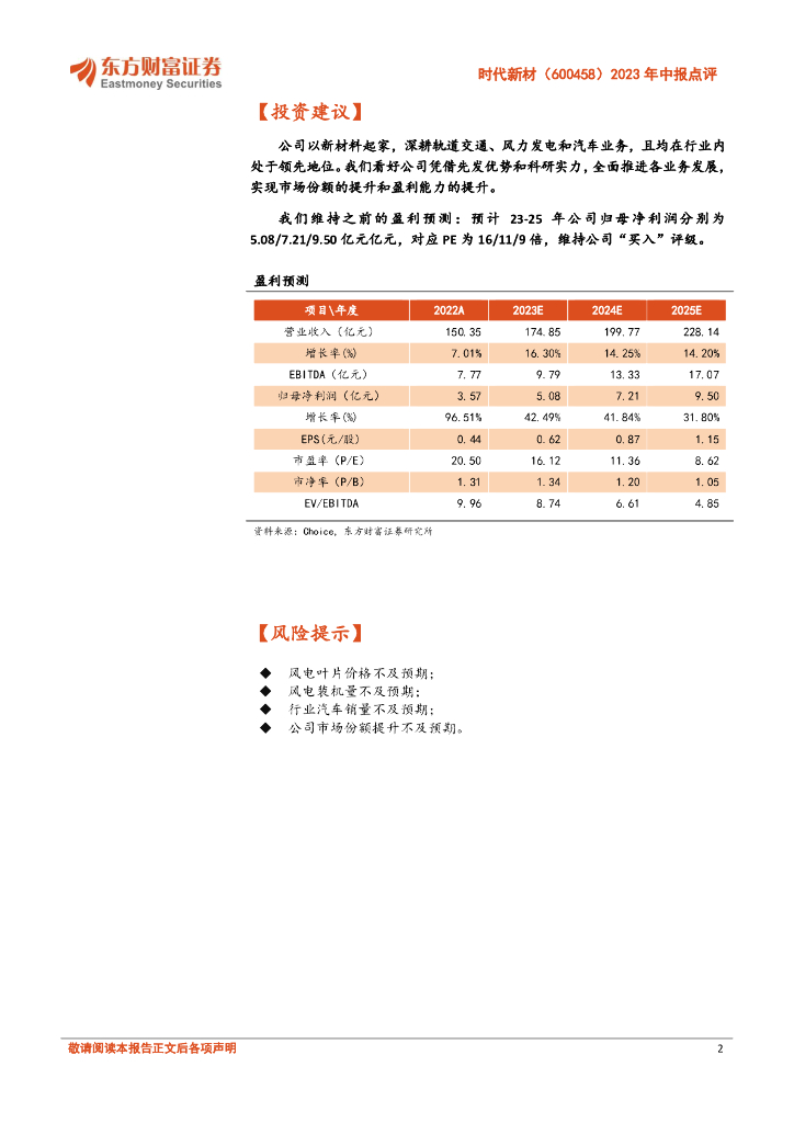 东方财富证券:时代新材(600458)-2023年中报点评:盈利表现符合预期,轨交、风电、汽车零部件齐头并进.pdf