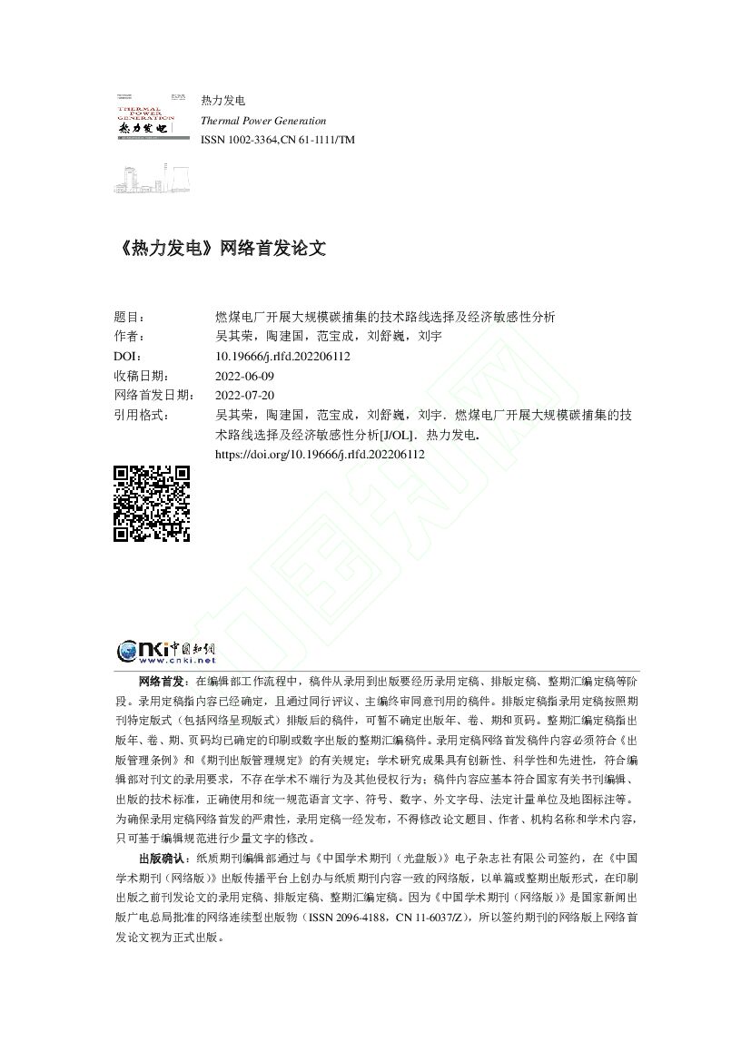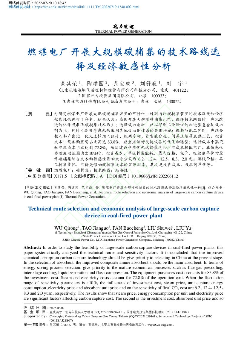 燃煤电厂开展大规模碳捕集的技术路线选择及经济敏感性分析.pdf