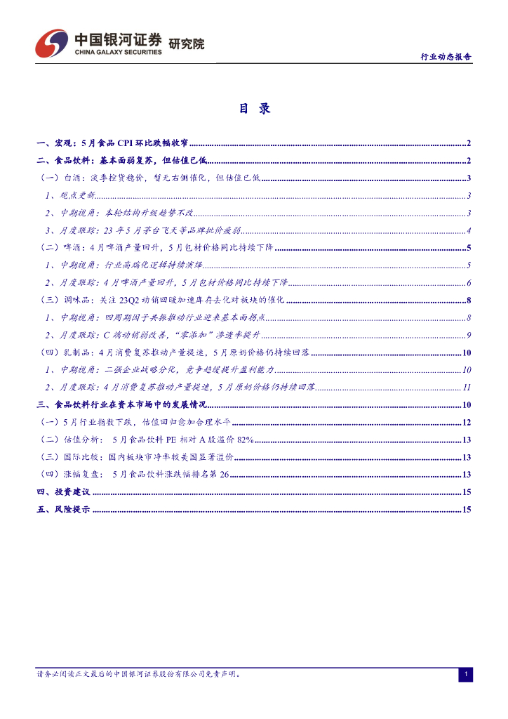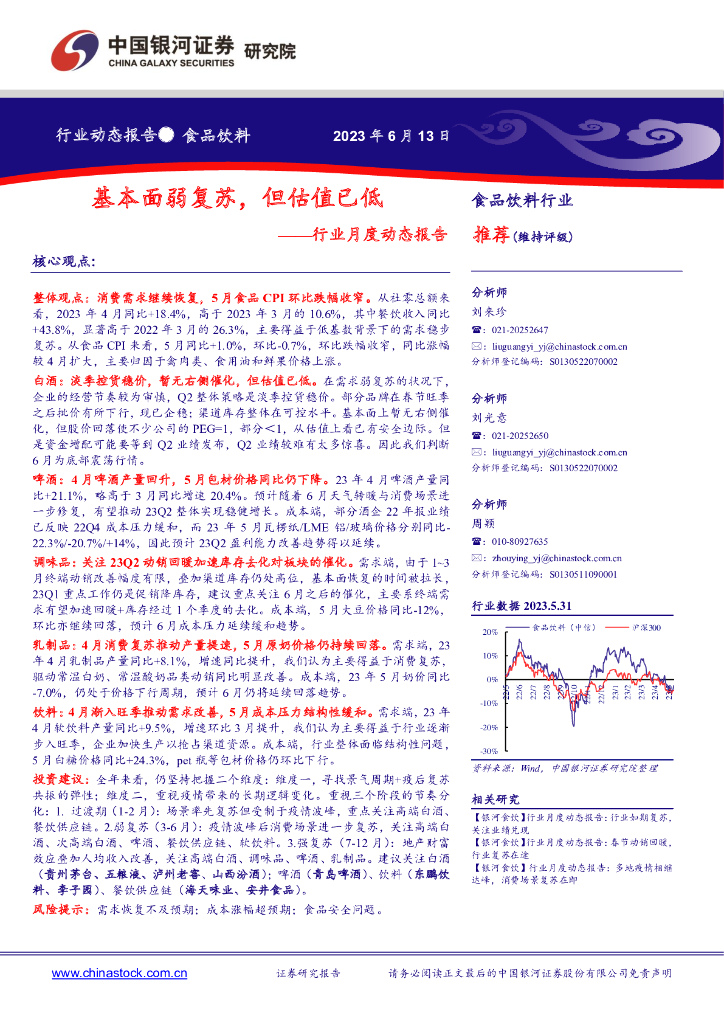 中国银河:食品饮料行业月度动态报告:基本面弱复苏,但估值已低.pdf