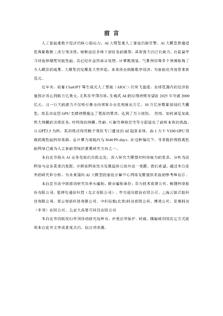 中国移动研究院:面向AI大模型的智算中心网络演进白皮书(2023年).pdf