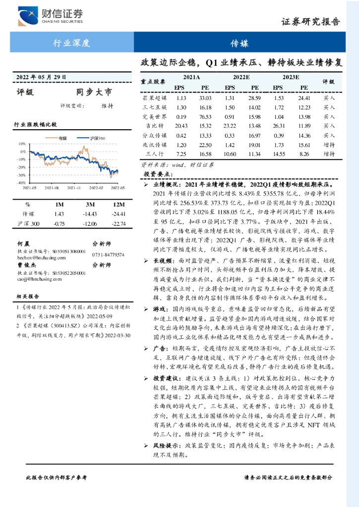 财信证券:传媒行业深度:政策边际企稳,Q1业绩承压、静待板块业绩修复.pdf