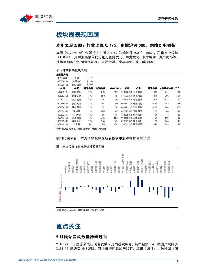 国信证券:传媒互联网行业周报:9月游戏版号发放、国庆档来临,持续看好游戏及影视行业机会.pdf