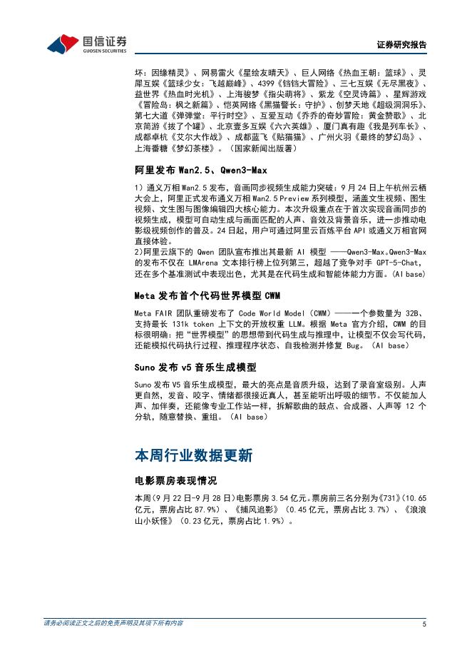 国信证券:传媒互联网行业周报:9月游戏版号发放、国庆档来临,持续看好游戏及影视行业机会