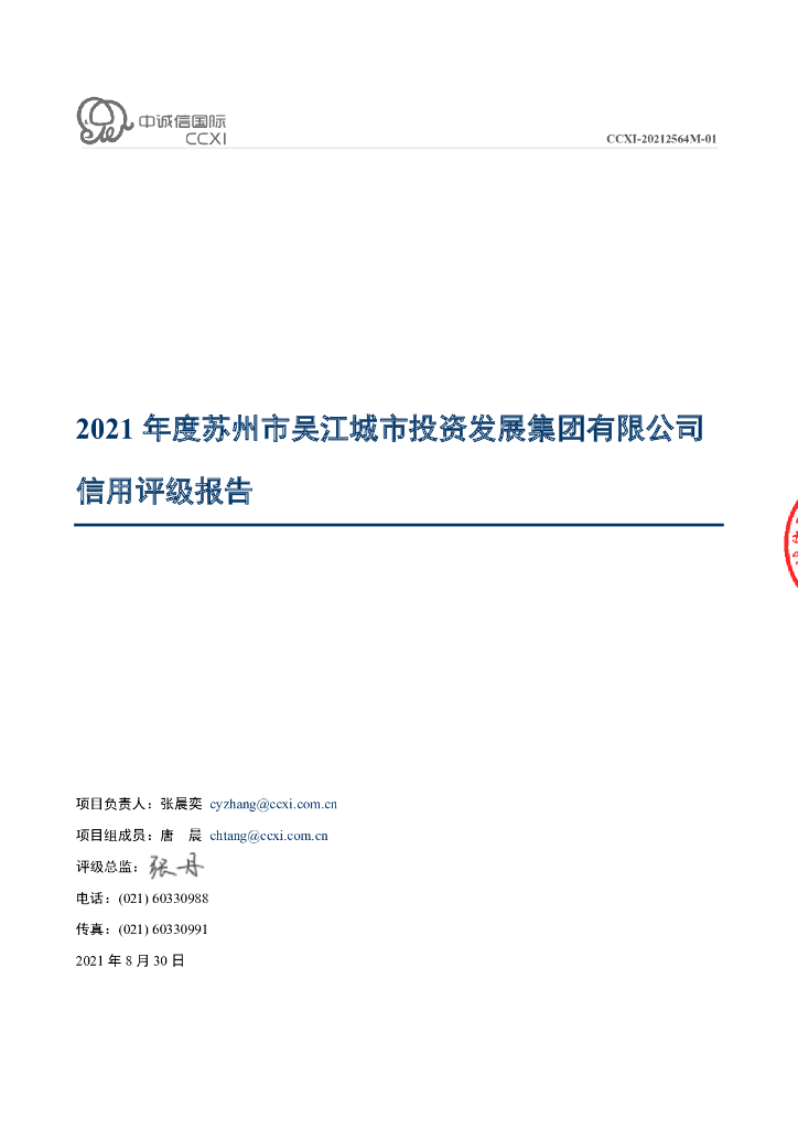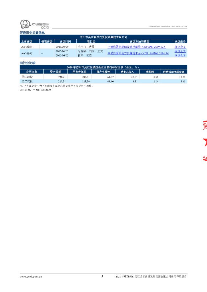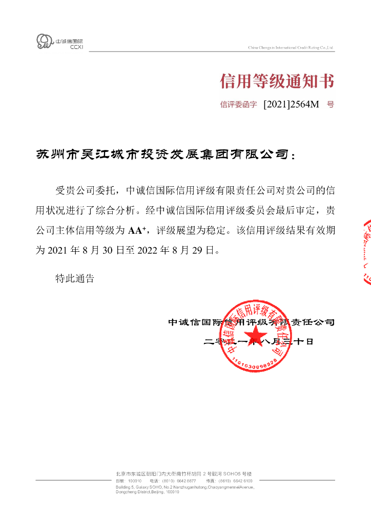 中诚信:2021年度苏州市吴江城市投资发展集团有限公司信用评级报告.pdf