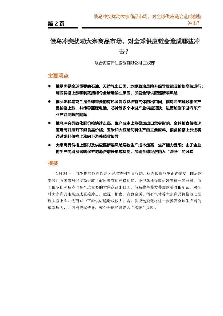 联合资信:俄乌冲突扰动大宗商品市场,对全球供应链会造成哪些冲击?.doc
