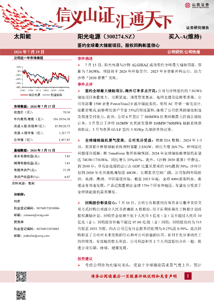 山西证券:阳光电源(300274)-签约全球最大储能项目,股权回购彰显信心.pdf