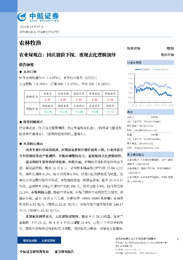中航证券:农业周观点:国庆猪价下探,重视去化逻辑演绎.pdf